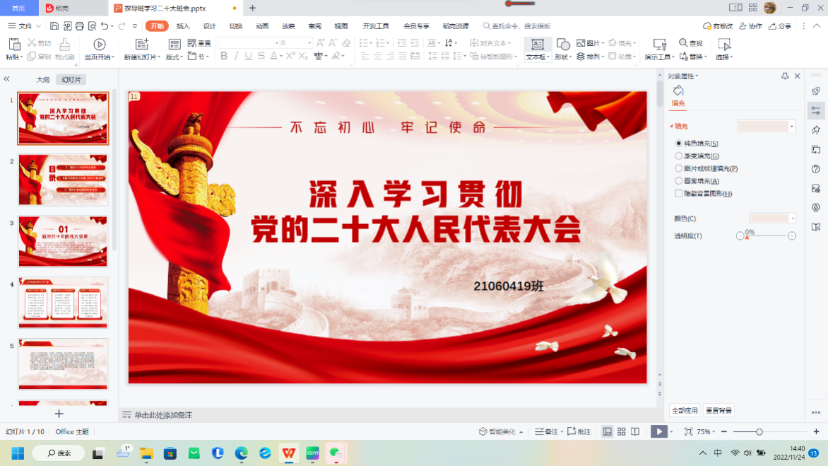 班会主要由三部分组成。首先,对二十大的主要内容与精神思想进行学习和领悟,让同学对二十大精神有了更深的认知和理解。接着,团支书简要讲述学习重点。强调二十大对全党全人民的重要性,并对二十大报告主要内容进行再次讲述,提出团与党息息相关,无论是身为团员和青年,要积极向上,努力奋进,靠近党组织,早日为国出力。最后讨论,同学们学习过后都有所收获,并积极发表了关于自己的看法和见解,表示会努力奋斗,认真学习。