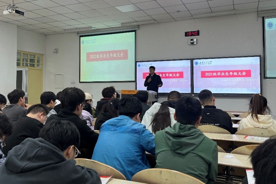 为帮助毕业生认清当前就业形势、树立积极就业观、明确毕业流程要求,3月19日,3044永利集团于教2-110召开2021级毕业生年级大会。会议由辅导员王国栋老师主持召开,兵器学院2021级全体毕业生参加了会议。